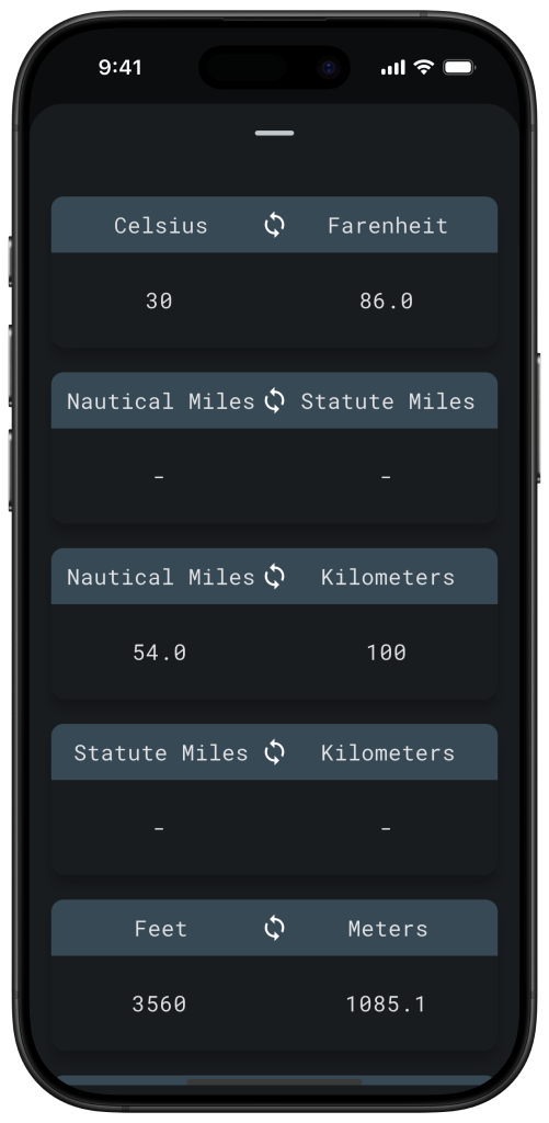 Enhance your flight planning capabilities by effortlessly converting units at your fingertips.